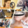 - Complete Setup: This ring light comes with a sturdy 5.2 feet tall tripod stand, providing a stable platform for your lighting needs. The included stand allows you to position the ring light at the ideal height for your specific use, whether it’s for makeup application, streaming, or shooting videos.