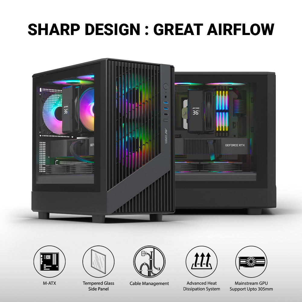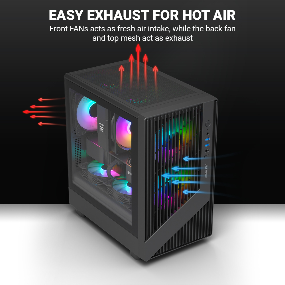 The Ant Esports 120 Air Mini is built around airflow optimization. Its mesh front panel and strategically placed fan mounts ensure that your system stays cool even under heavy loads, maintaining stable performance and longevity for all your components.