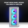 High airflow design with mesh front and pre-installed RGB fans