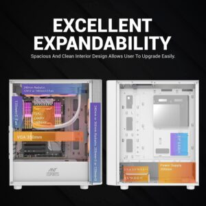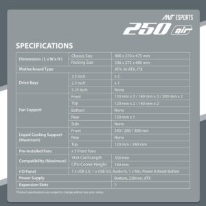 The Ant Esports 250 Air is a distinctive, yet minimalist, mid-tower ATX case with easy cable management and exceptional cooling. A highly durable solid steel front panel etched with stylish air flow vents delivers high airflow along with great looks.