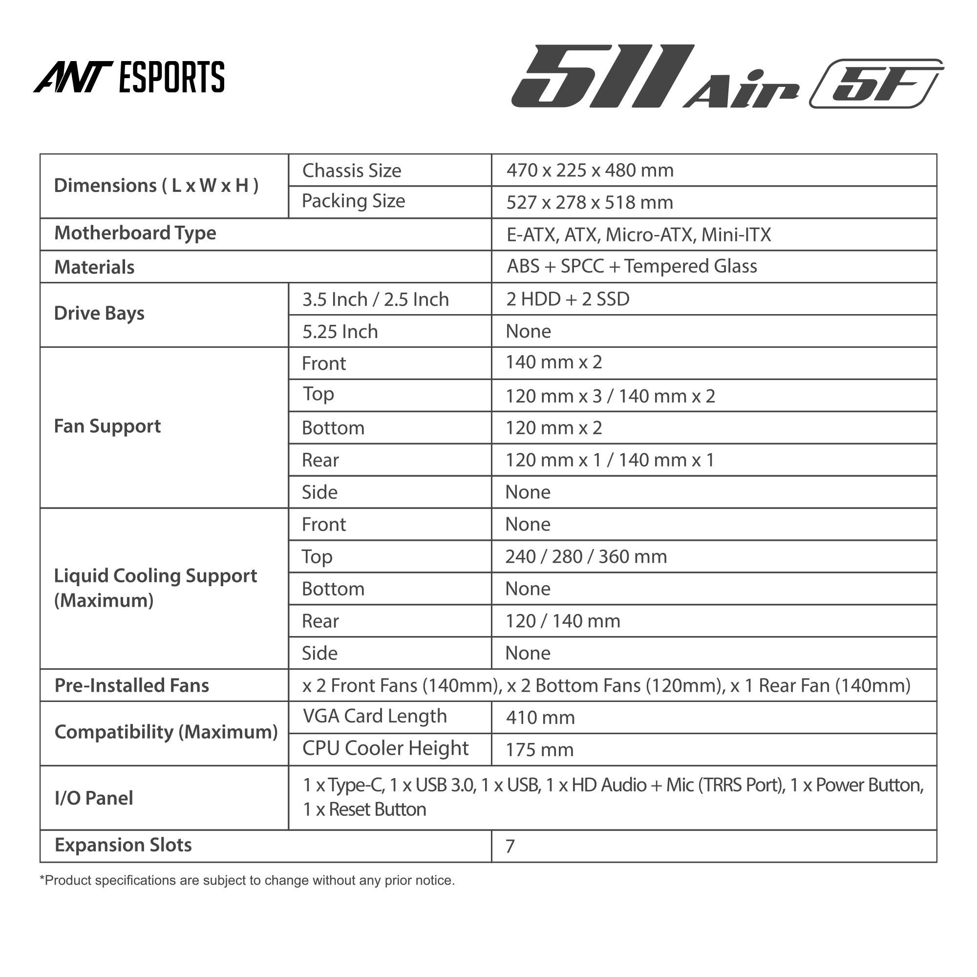 Ant Esports 511 Air 5F Mid Tow...
