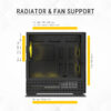 A crystal-clear tempered glass side panel showcases your components beautifully, while the robust construction using ABS and SPCC steel enhances durability. The case blends stunning looks with superior functionality, making it ideal for enthusiast-grade PC builds.