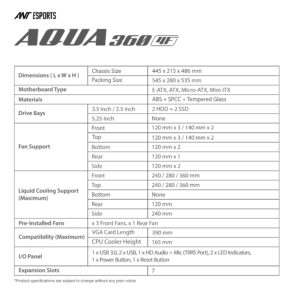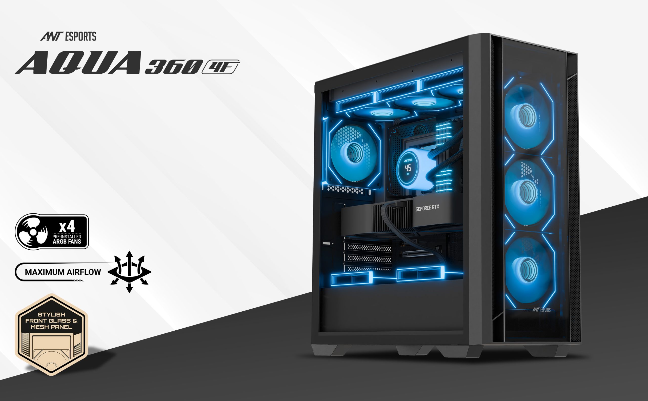 Ant Esports AQUA 360 4F Mid Tower (E-ATX/ATX/M-ATX/M-ITX) Black Cabinet 4x120mm Fans