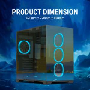 The Ant Esports Crystal Mirror is a premium showcase PC case designed for gamers and creators who want luxury aesthetics paired with powerful cooling Featuring mirror-finish tempered-glass panels, side-mounted triple-fan cooling, and support for BTF motherboards, it delivers a clean, futuristic build experience. With massive GPU clearance, modern I/O connectivity, and optimized airflow, the Crystal Mirror sets a new standard for modern PC chassis design.
