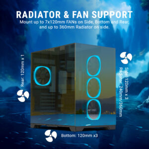 Side-Mounted Cooling System – Triple-side 120mm fan support for direct GPU cooling and superior temperature performance.