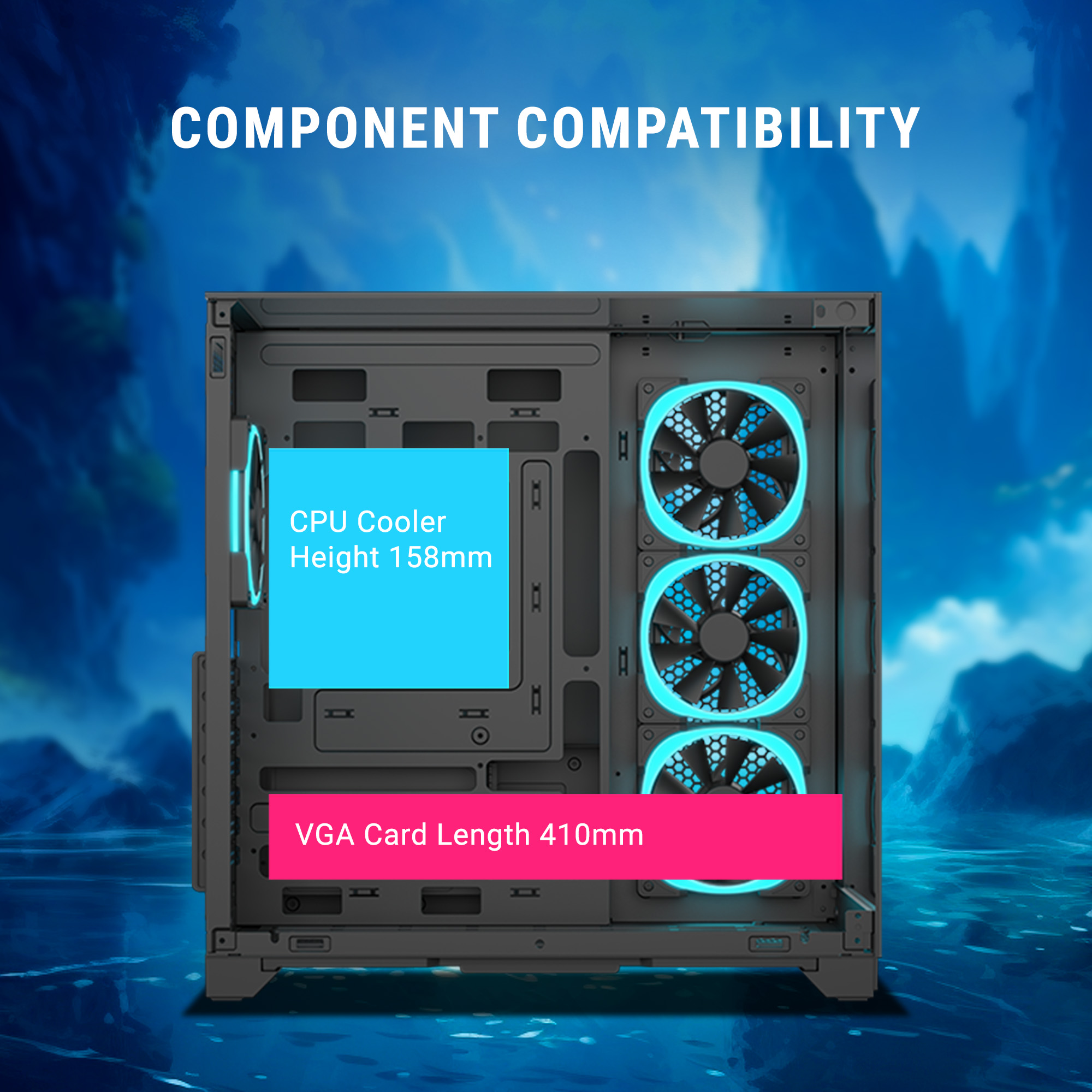 Extreme GPU Clearance – Supports high-end graphics cards up to 410mm, perfect for modern flagship GPUs.