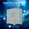 Featuring mirror-finish tempered-glass panels, side-mounted triple-fan cooling, and support for BTF motherboards, it delivers a clean, futuristic build experience. With massive GPU clearance, modern I/O connectivity, and optimized airflow, the Crystal Mirror sets a new standard for modern PC chassis design.