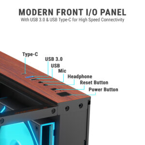 Modern front I/O panel with USB Type-C and multiple connectivity options