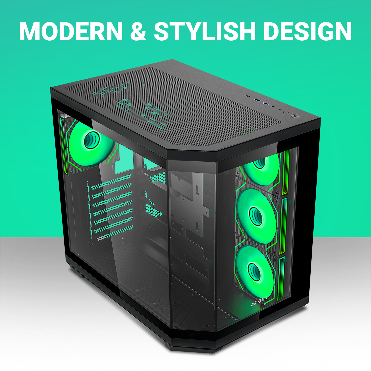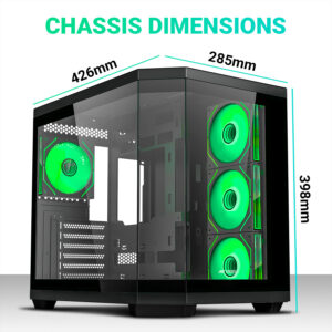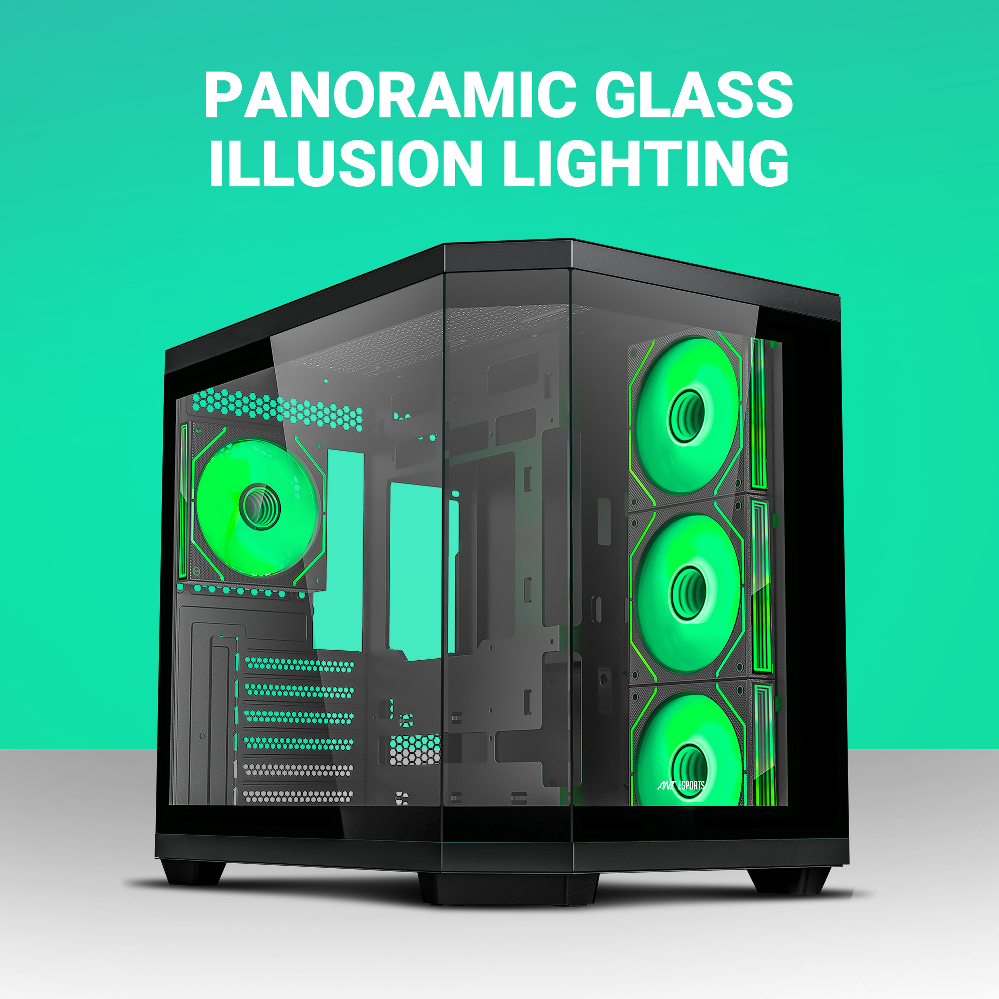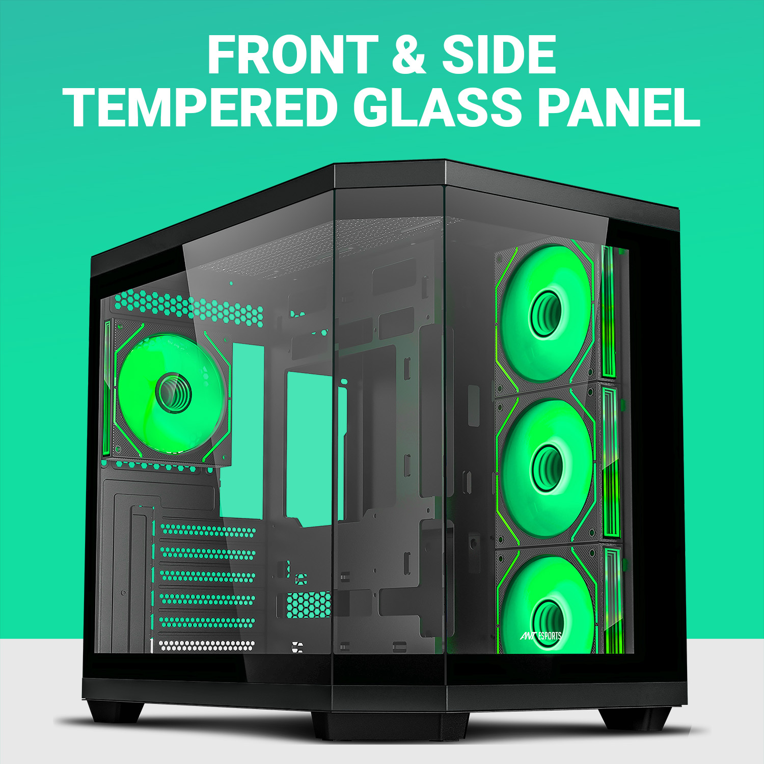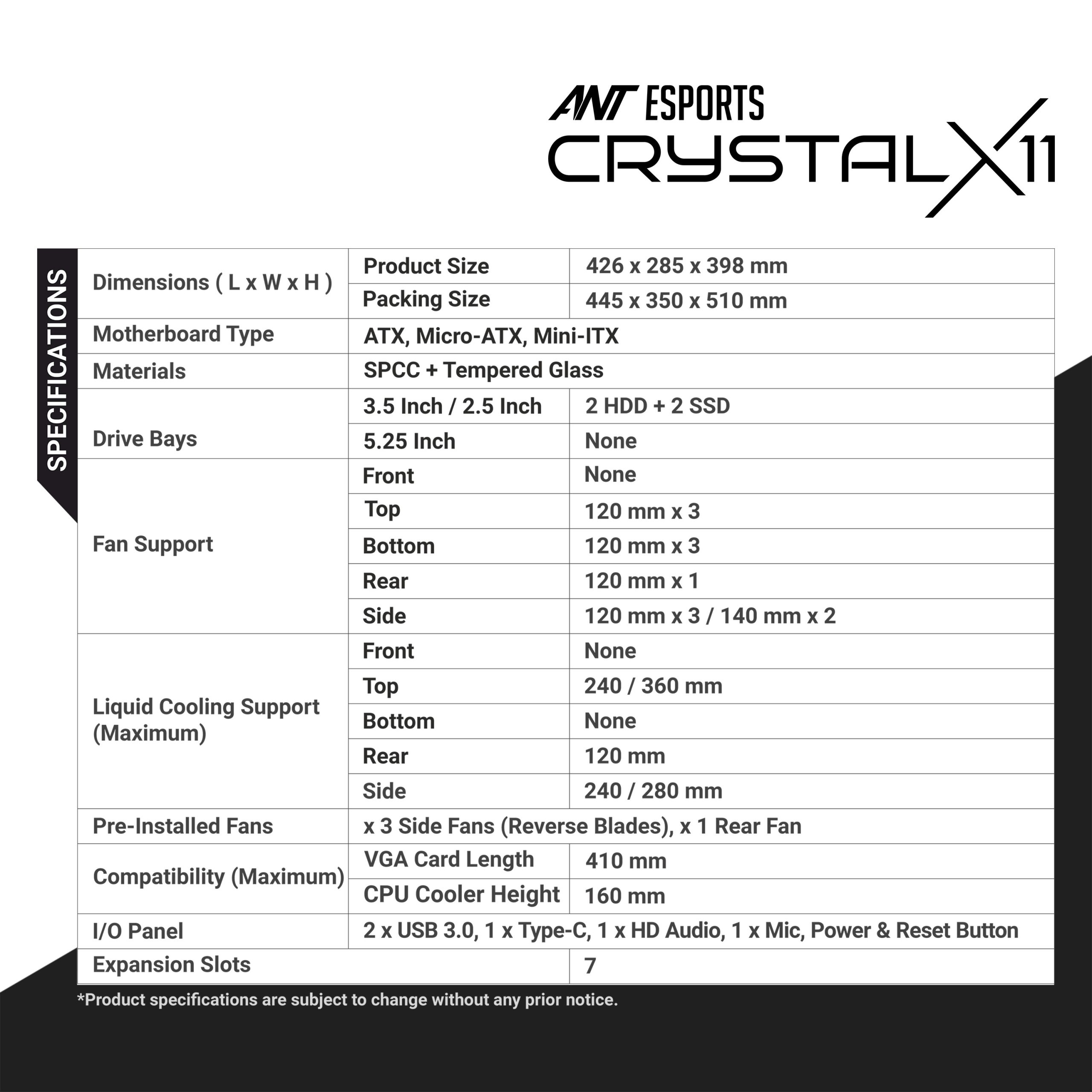 Ant Esports Crystal X11 Mid-Tower High End Gaming Cabinet – Black with Pre-Installed 4 x 120 mm ARGB Fans