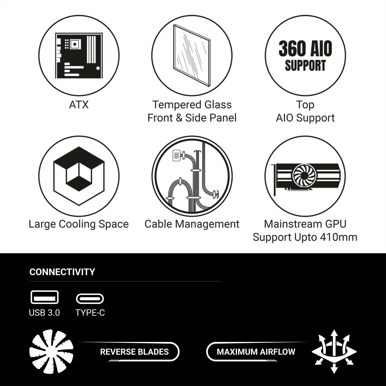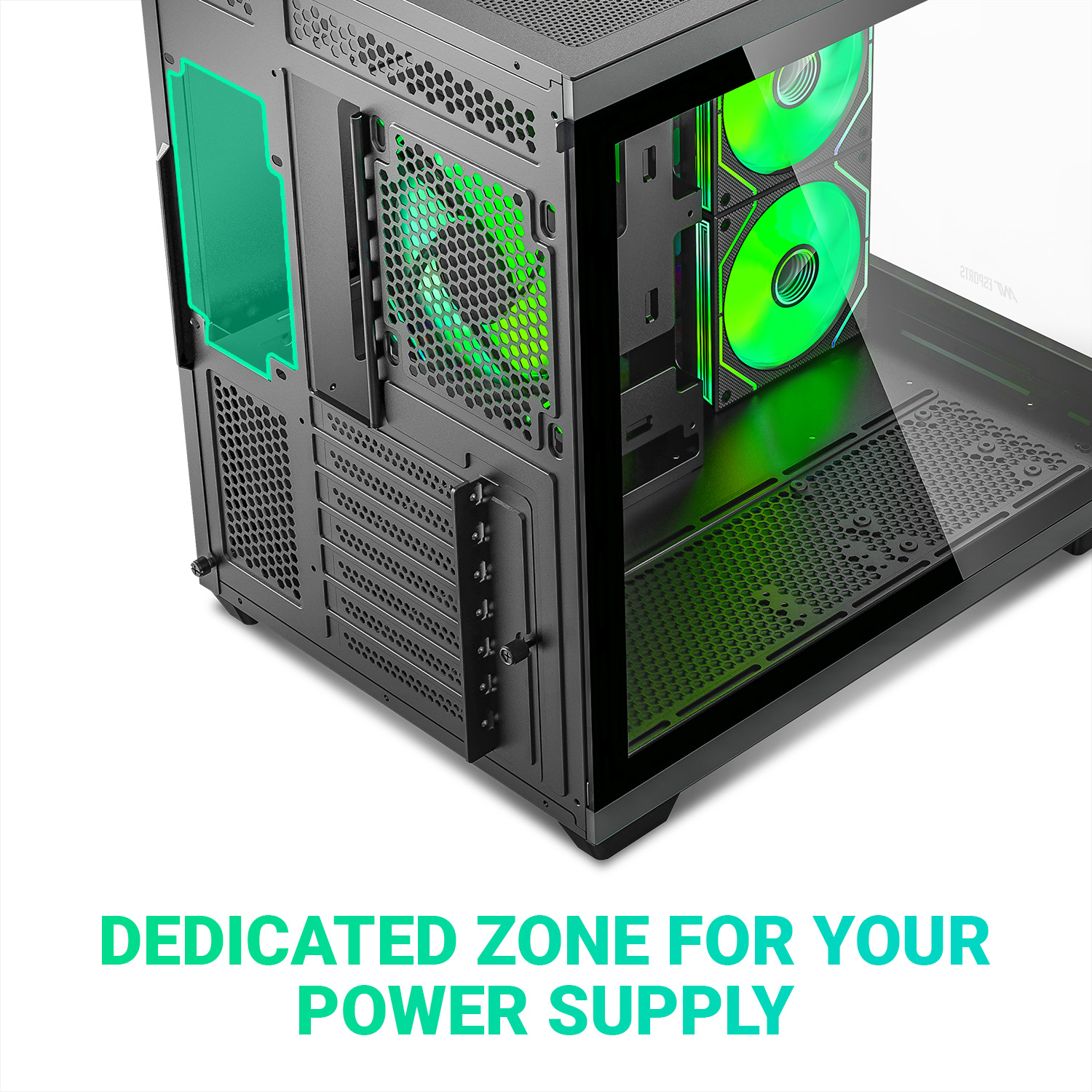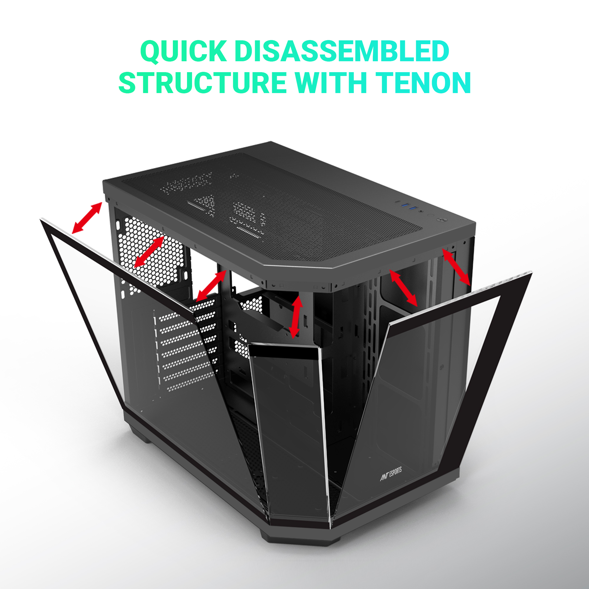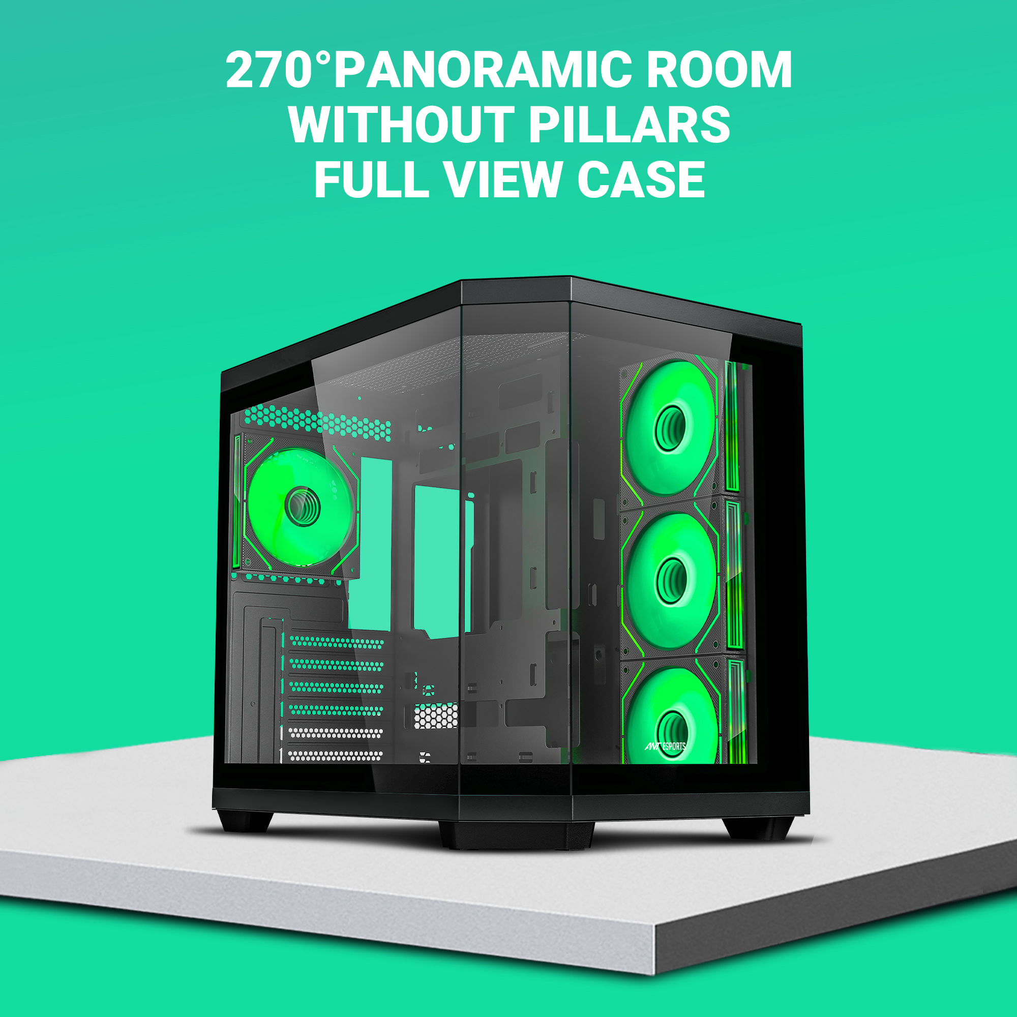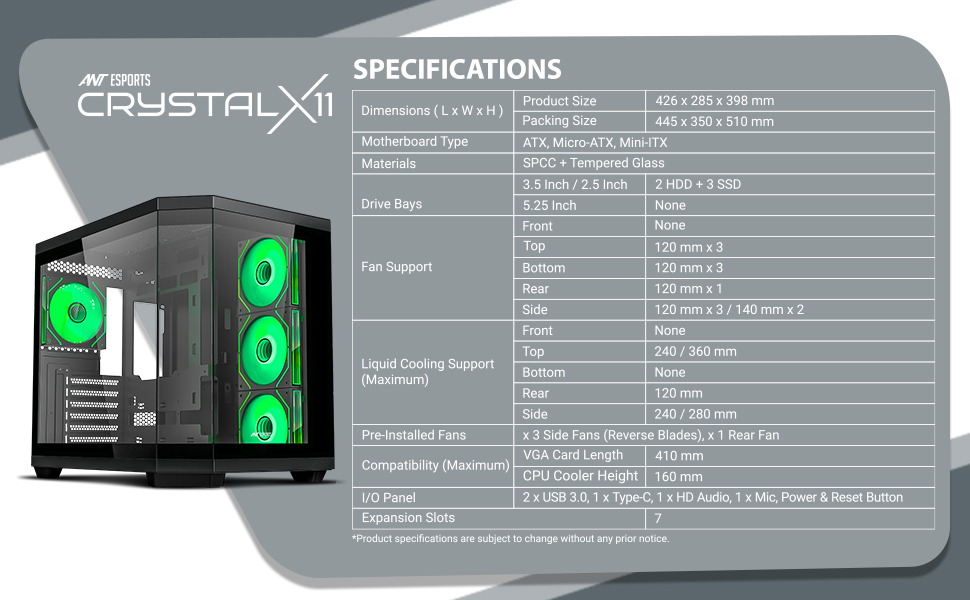 Ant Esports Crystal X11 Mid-Tower High End Gaming Cabinet – Black with Pre-Installed 4 x 120 mm ARGB Fans