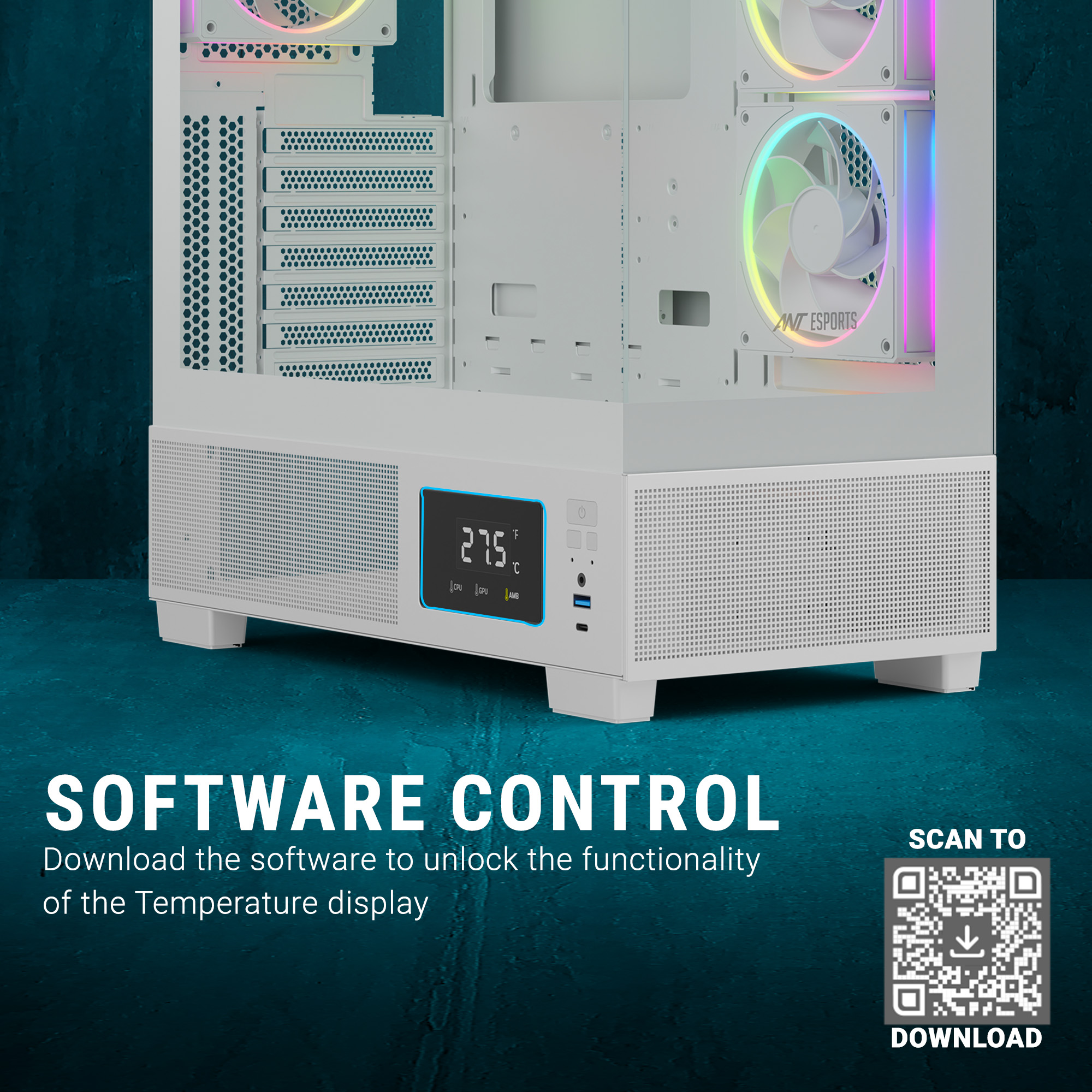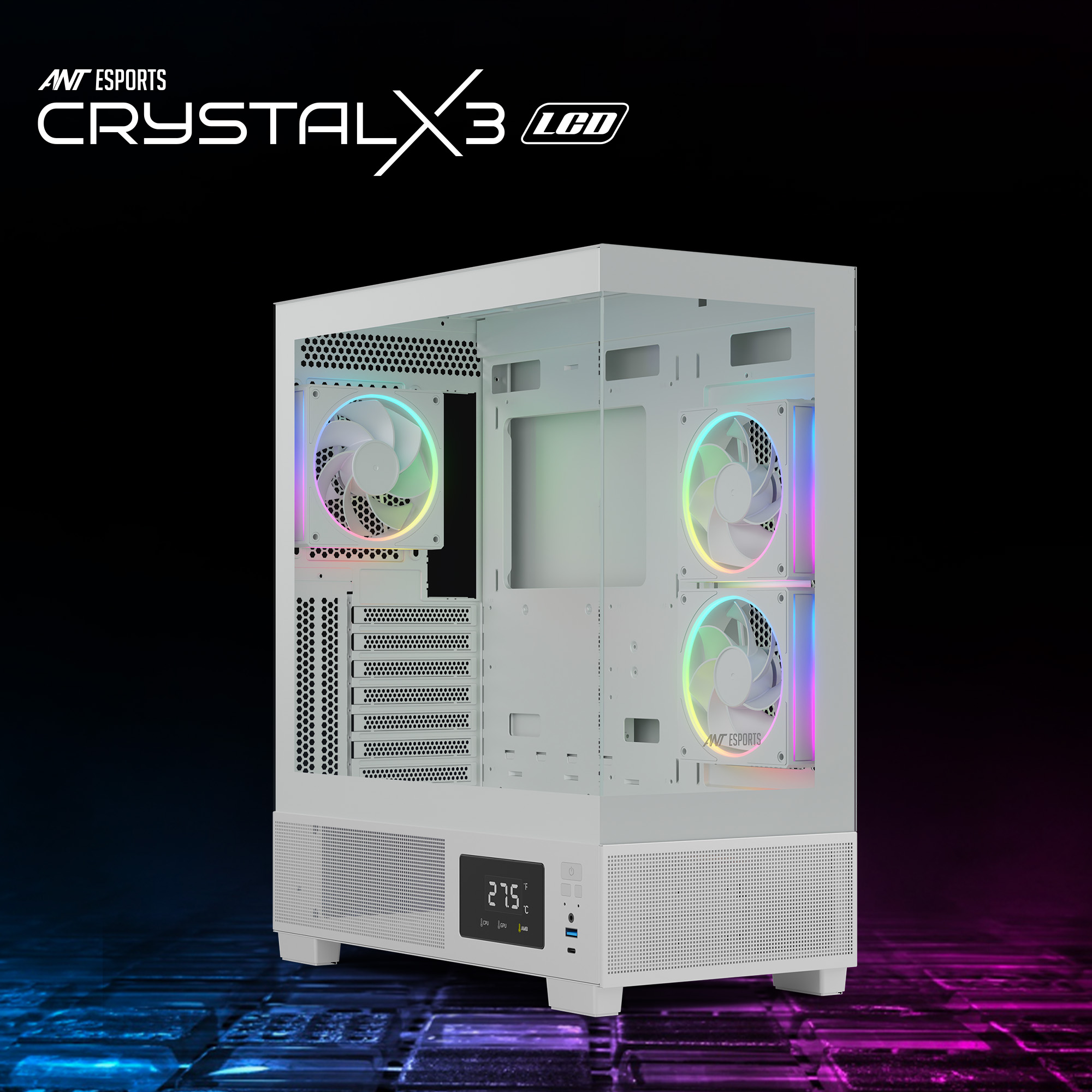 Experience cutting-edge aesthetics and functionality with the Ant Esports Crystal X3 LCD, a premium dual-chamber mid-tower designed for enthusiasts who demand performance, style, and innovation. Crafted with a sleek white finish and 4mm tempered glass, the Crystal X3 LCD elevates any gaming or workstation setup with its bold modern design.