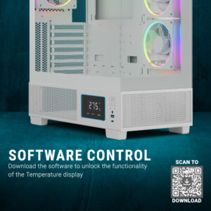 The Crystal X3 LCD provides exceptional cooling potential with support for up to eight 120mm fans and 360mm liquid cooling via top-mounted radiators. Its efficient dual-chamber layout ensures improved cable management, unrestricted airflow, and a clean showcase of your hardware.