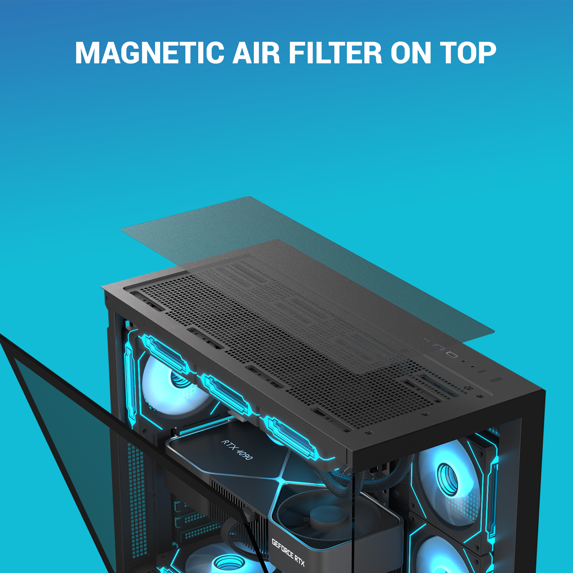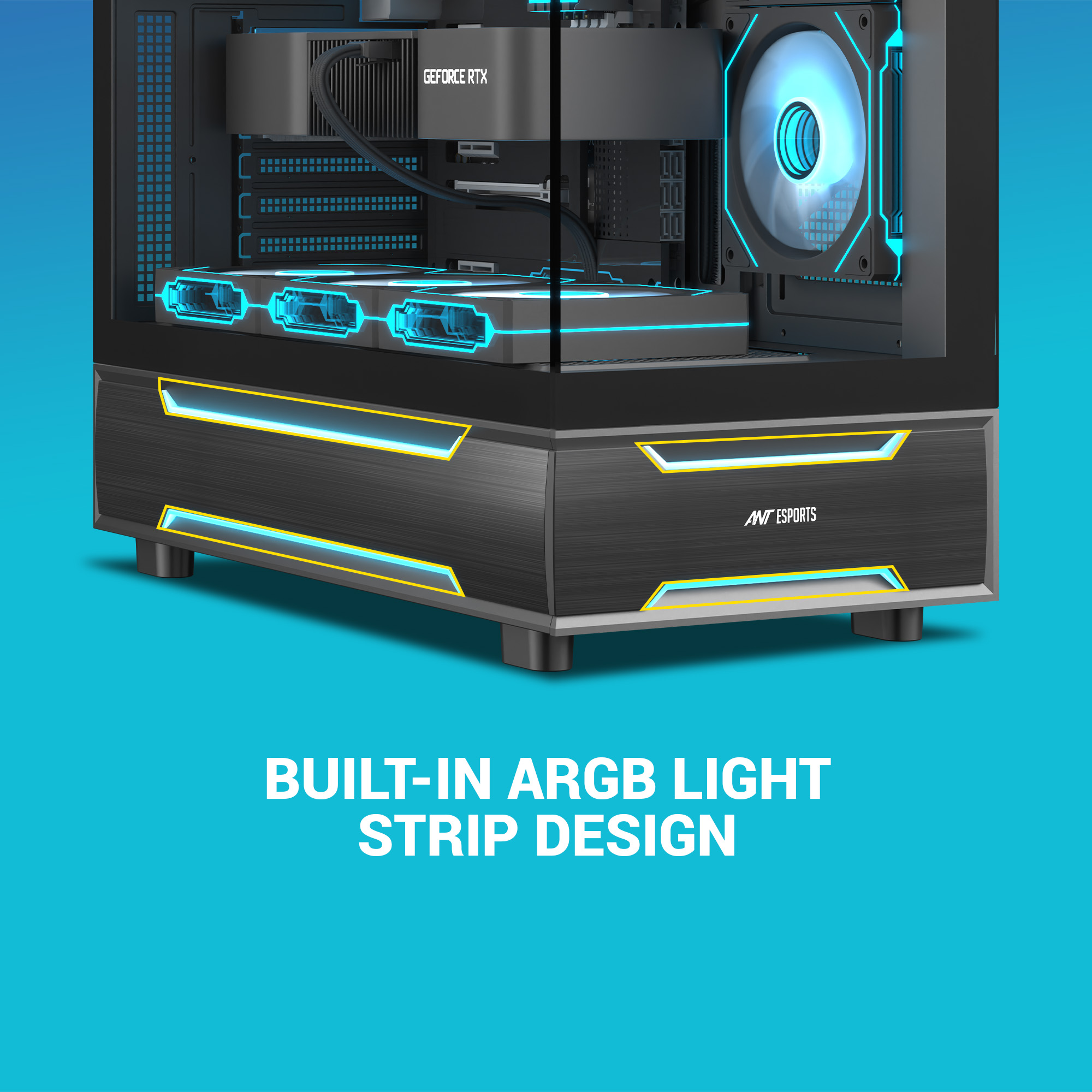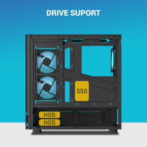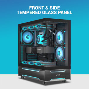 Tempered-glass front and side panels for full visibility of your build and RGB lighting.