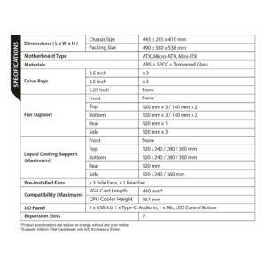 Spacious Interior Layout – Optimized for high-end builds with GPU clearance up to 440mm and CPU cooler height up to 167mm, ensuring compatibility with large components.