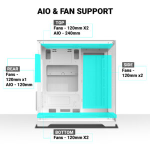 Supports dual radiators (up to 240 mm top / 120 mm rear)