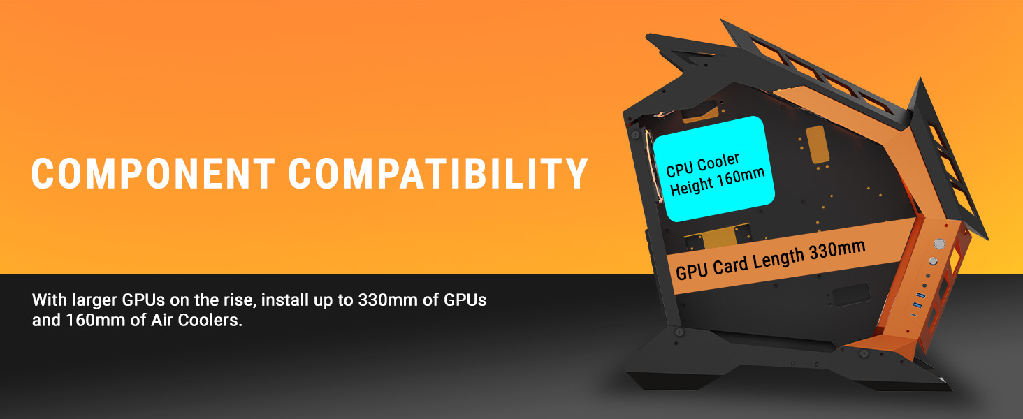 - Enhanced Ventilation – The open design allows air to flow freely across all components, allowing for consistent cooling and reducing the risk of thermal throttling, ensuring your system runs smoothly.