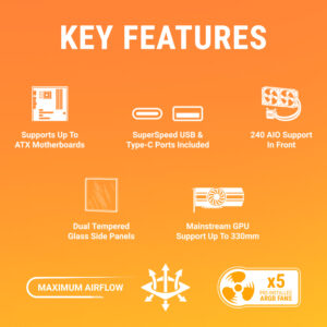 - Optimal Cooling for High-Performance Builds – Whether you’re using air or liquid cooling, the chassis is built to accommodate high-end hardware, ensuring your system remains cool during intense gaming or high-demand tasks.