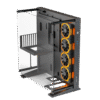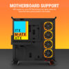 - Included 4x120mm ARGB Ring Fans – The chassis comes with four 120mm ARGB ring fans placed on the sides, delivering powerful airflow and customizable lighting effects to enhance both cooling and aesthetics.