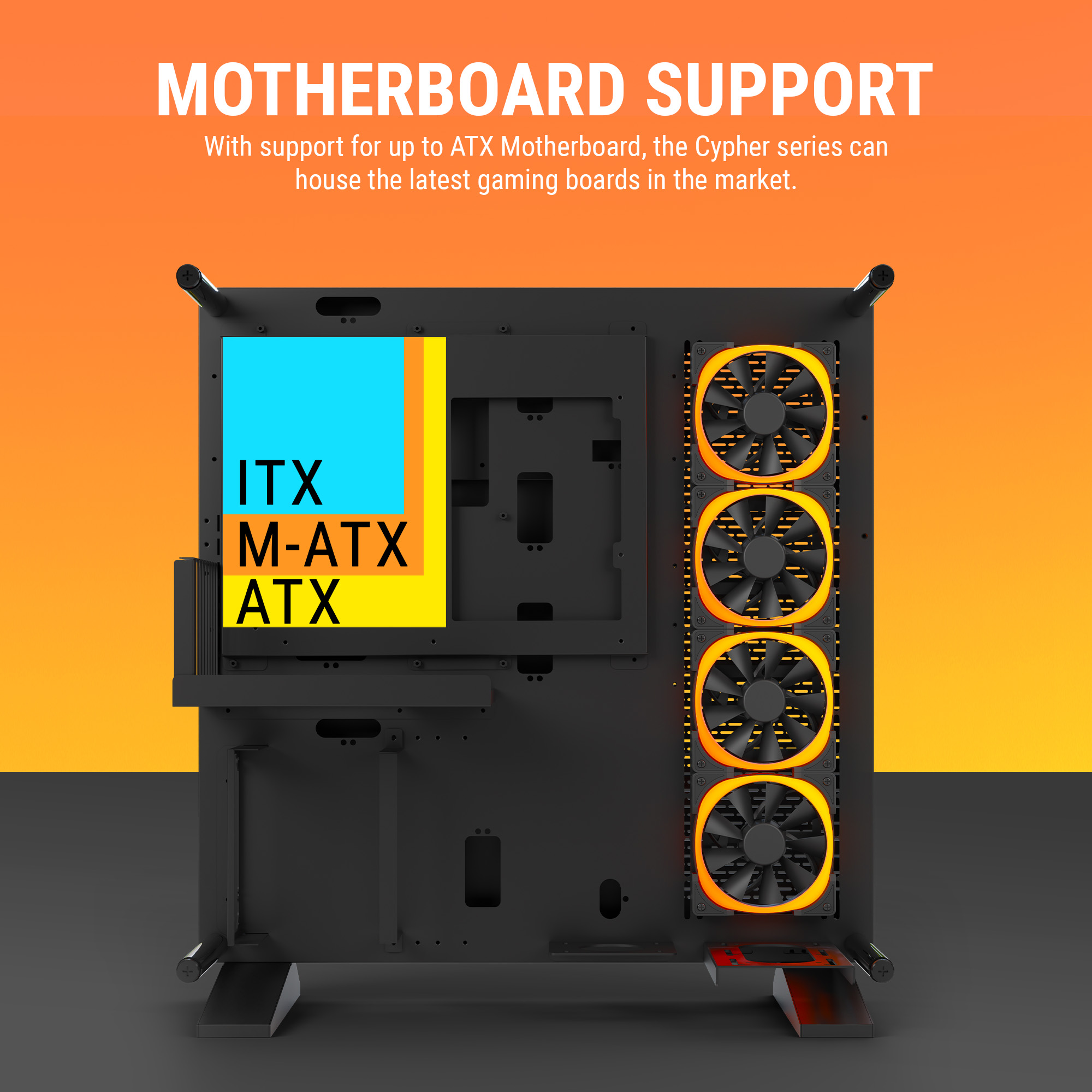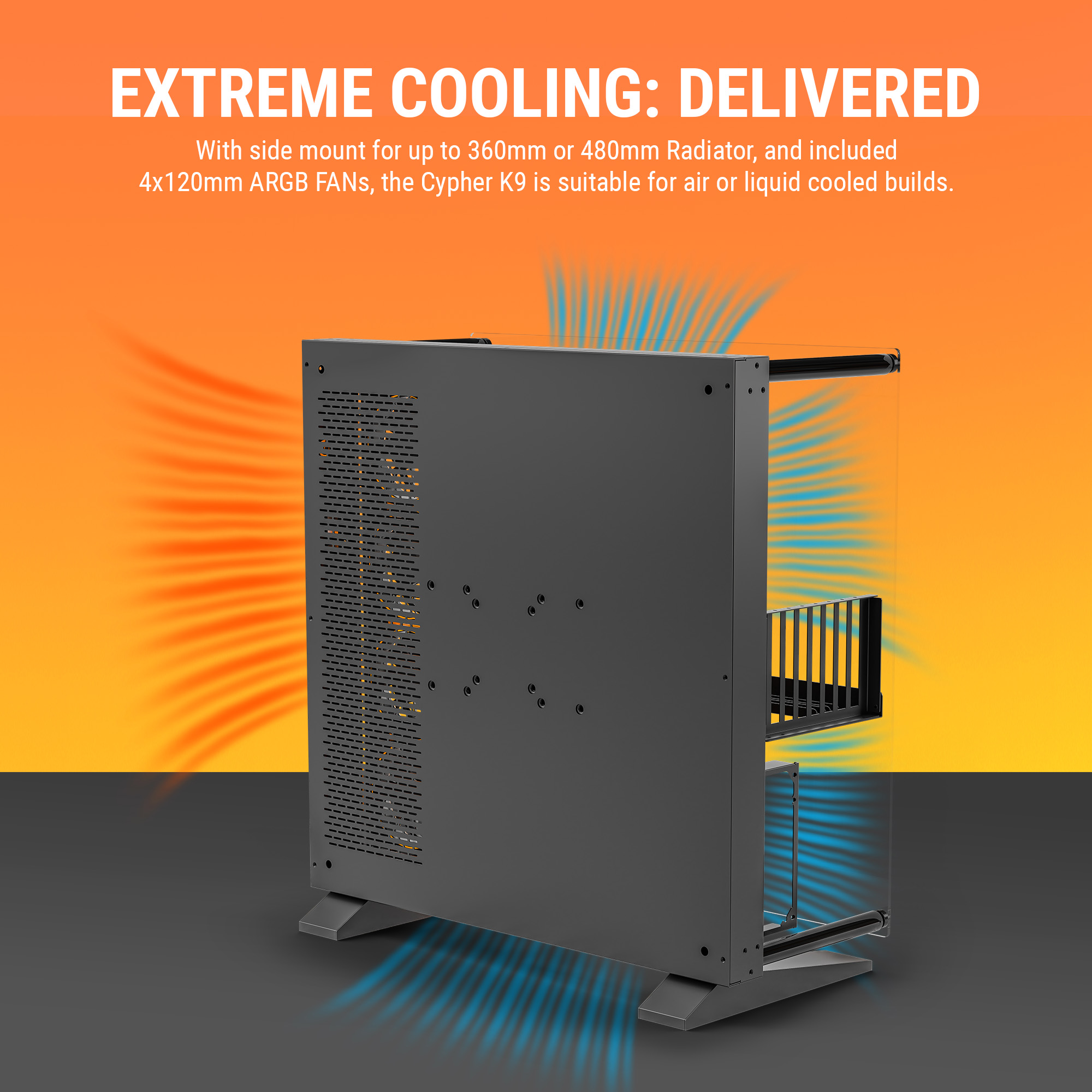 Pre-installed with four high-performance side-mounted 120 mm fans, the Cypher K9 ensures optimal airflow straight out of the box. Whether you’re building an overclocked gaming monster or a high-power creative workstation, the Cypher K9 offers the flexibility, space, and cooling power to bring your vision to life.
