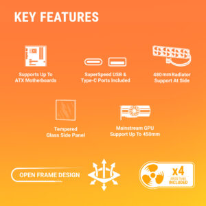 - Enhanced Visibility – The open-frame design provides a full view of your components, showcasing your hardware, RGB lighting, and cable management in all their glory.