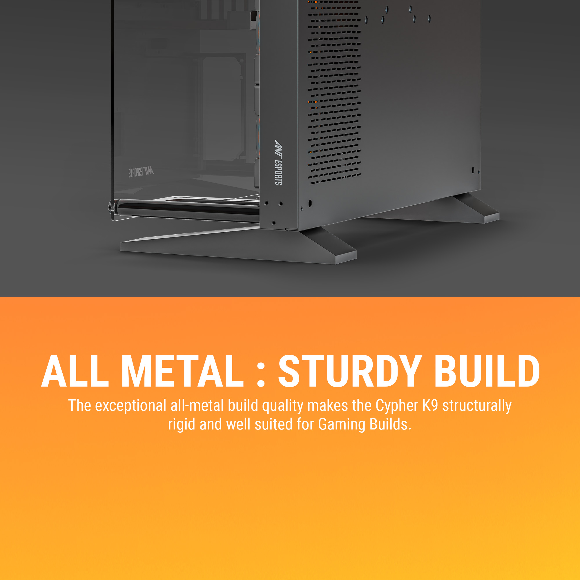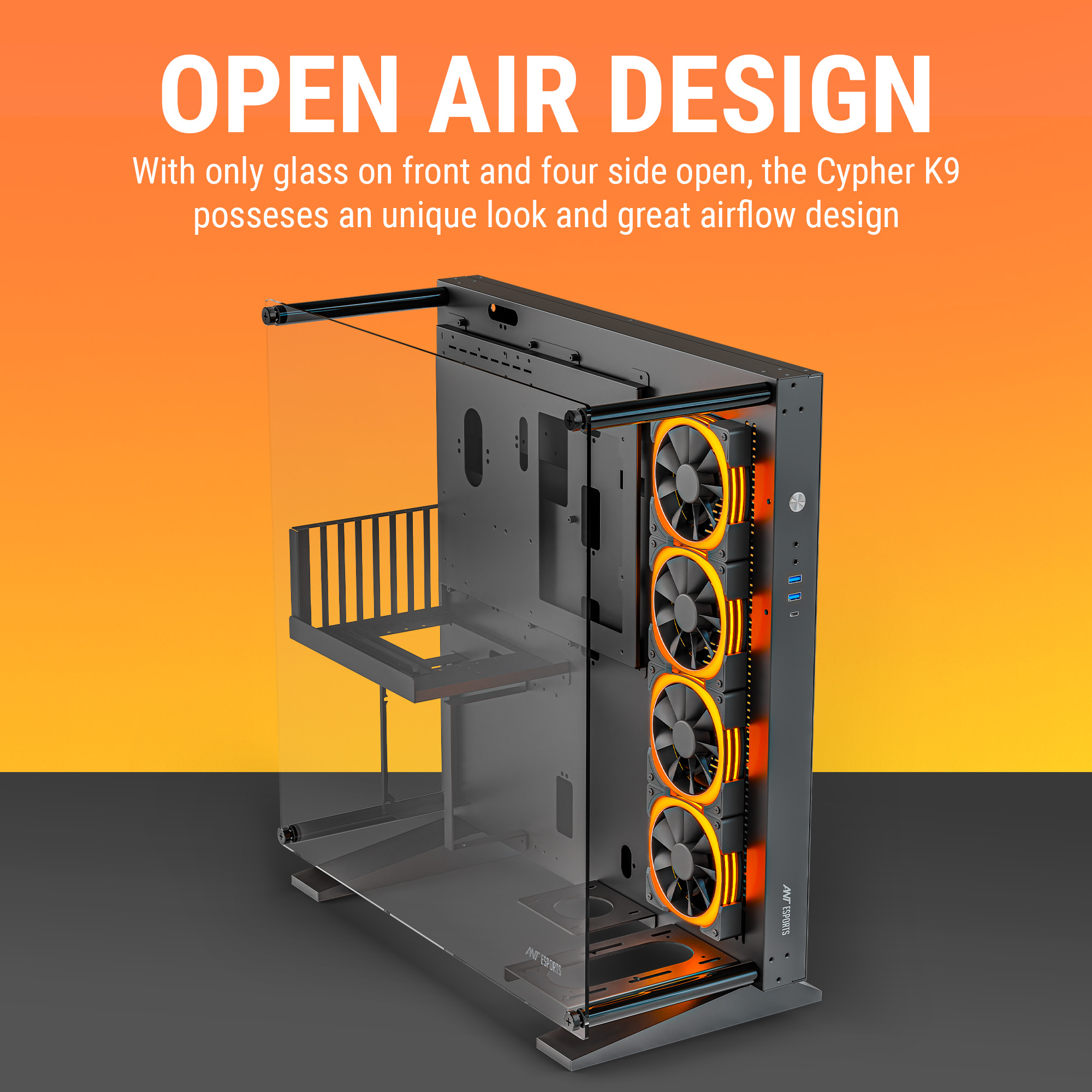 The Ant Esports Cypher K9 is a premium open-frame mid-tower PC case designed for enthusiasts who value performance as much as aesthetics. Its unique open-air structure maximizes airflow while giving your system an aggressive, industrial look that stands out in any setup.