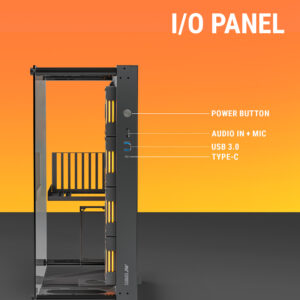 - Quick Access – Located on the front of the chassis, the I/O ports are easily accessible, allowing for convenient and quick connections without reaching around the back of the case.