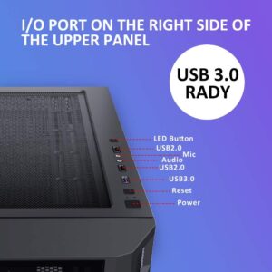 - Rich IO Panel – The case comes with two USB 2.0 ports, one USB 3.0, and one LED button along with power and audio ports.