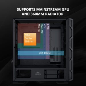 - Large Storage Options – With four 2.5” SSD mounts and dual 3.5” HDD mounts the Ant Esports Dynamic GT is ideal to build any gaming or production system.