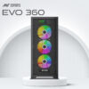 Its spacious E-ATX supporting chassis offers incredible hardware flexibility — from large GPUs and tall CPU coolers to multi-fan configurations and top-tier liquid cooling systems. With its pre-installed ARGB fans and stunning tempered glass side panel, the EVO 360 transforms your setup into a visual masterpiece.