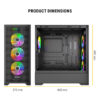 Featuring a stylish tempered glass side panel, the EVO 360 is made to showcase your RGB components, cable management, and cooling hardware. The four ARGB fans provide vibrant lighting, customizable through the LED control button or supported motherboard software.