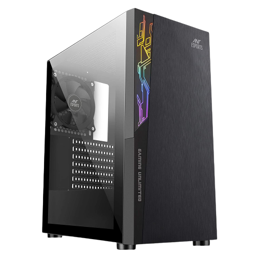 The Ant Esports ICE 120 AG is a mid-tower gaming cabinet capable of housing motherboards from the smallest mITX form factor all the way up to the conventional ATX standards. The monolithic design inspired by bold edges and flat surfaces comes with an integrated RGB panel in te front which is engraved in the metallic black finish of the cabinet to give it a retro classic look. With space for up to eight 120mm fans in total with three in front two on top and bottom and one t the back which comes preinstalled the cabinet is meant to keep everything inside cool and can even house a 240mm liquid cooler in the front and a 120mm at the back.
