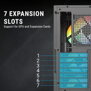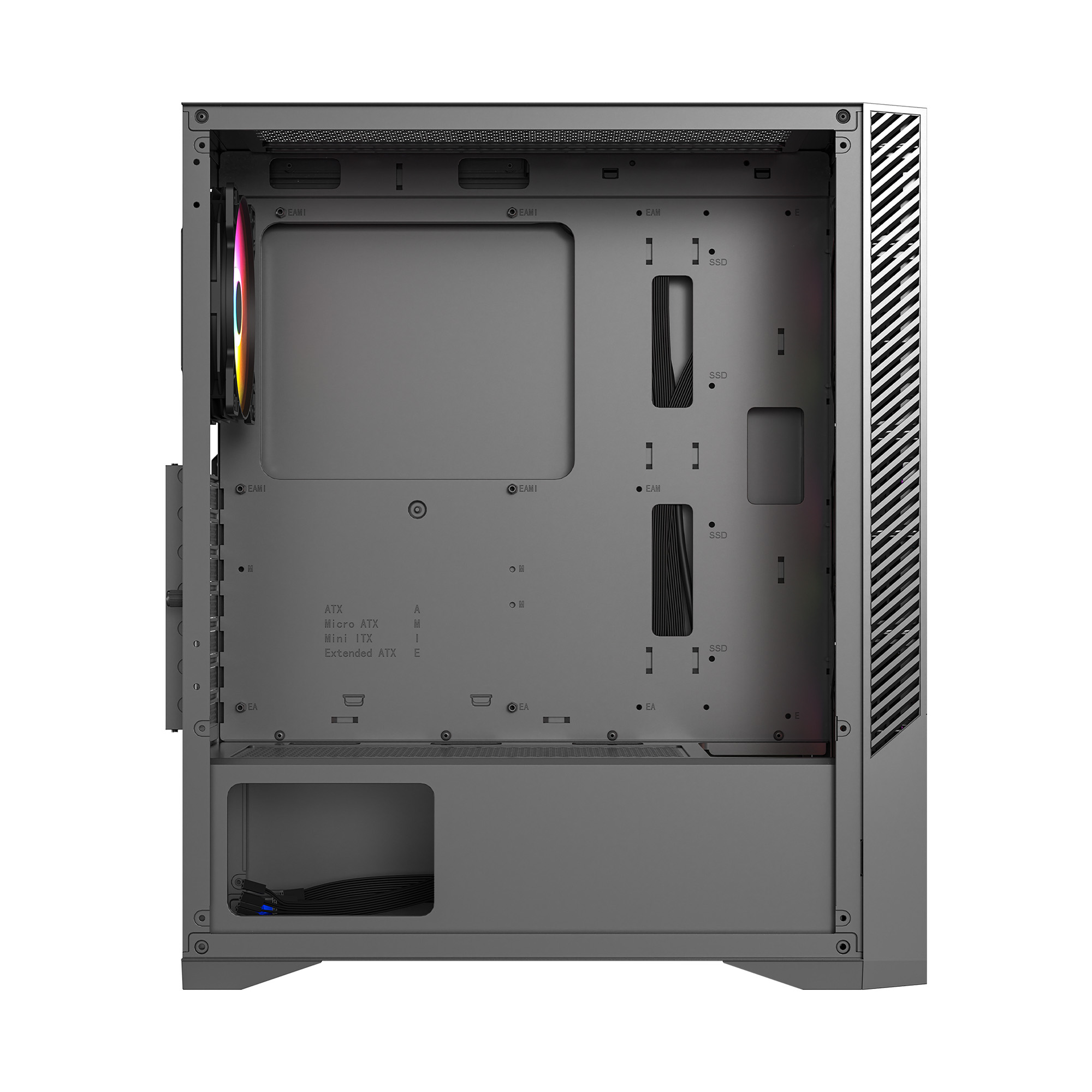 The stylish mesh front panel enhances airflow while giving the cabinet a bold, aggressive gaming look. The tempered glass side panel allows full visibility into your setup, making it ideal for RGB builds, custom loops, and high-end gaming rigs.