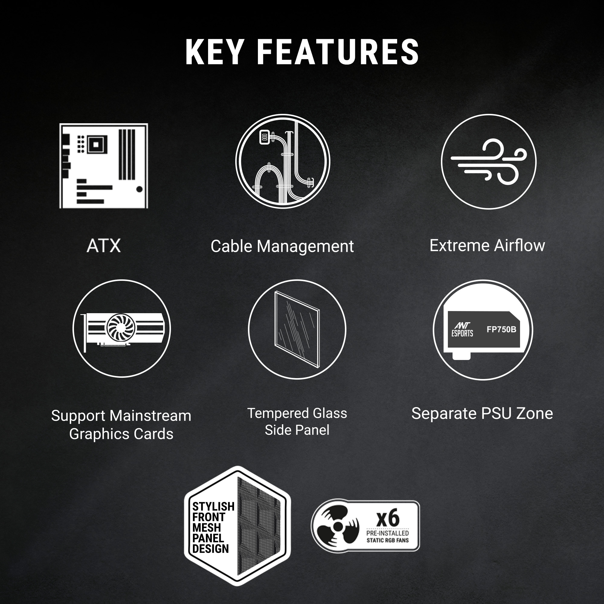 The Ant Esports ICE 270M 6F is engineered for gamers and PC enthusiasts who demand strong airflow, premium aesthetics, and maximum compatibility. With a factory-installed set of six high-performance cooling fans, this chassis is ready to take on your powerful hardware while maintaining optimum temperatures under load