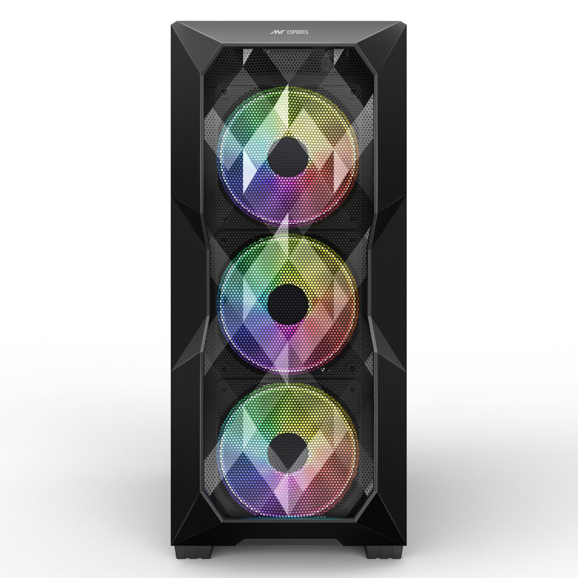 The Ant Esports ICE-300 Mesh perfectly balances a well engineered high air flow design and an intricate art form with its unique front panel. The case is fed by three pre-installed Static RGB fans that suck in air through a well-engineered, crystal-shaped metallic mesh which not only blocks dust but provides an unrestricted path for fresh air for optimum cooling experience. Being made out of metal this unique mesh design not only is highly durable but also imparts structural strength to the case even from the front, unlike other cases.