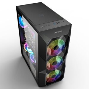 - Three Static RGB Fans – The case comes with three 120mm Static RGB fans pre-installed and are compatible with popular motherboard software like MSI Mystic Light, Asus Aura Sync, Gigabyte RGB Fusion and AsRock Polychrome.