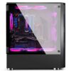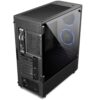 The front tempered glass fascia houses three 120mm rainbow ring fans that suck in ample fresh air through the side vents for an abundant cooling experience. Liquid cooling options range from a maximum of 240mm radiator in the front and 120mm at the back making sure there is always room for upgrades in the future.