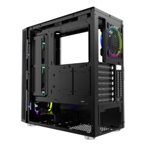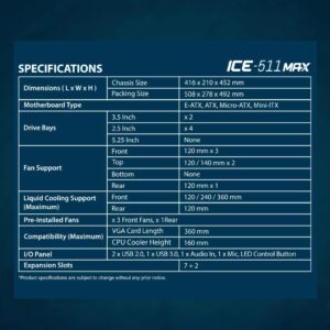 The Ant Esports ICE 511Max is the no-holds-barred cabinet that offers everything that you can ask for from a cabinet and much more! The front mesh panel has a unique RGB backlit ‘Gaming Unlimited’ marquee and thanks to its three preinstalled 120mm auto RGB fans it keeps the most demanding systems cool and the tool-less side tempered panel gives a full view of the lighting effects inside which can easily be controlled via a build-in ARGB controller. With whooping support of up to a 360mm radiator in the front and a 120mm at the back this mid-tower can easily house a tiny mITX motherboard & go all the way up to an E-ATX one which means you can even build your HEDT inside the ICE 511MAX.