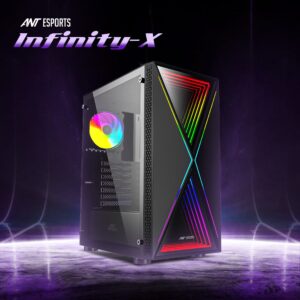 - Striking Infinity Mirror Design: The Ant Esports Infinity X gaming PC cabinet stands out with its unique infinity mirror design on the front panel. The mesmerizing visual effect created by the reflective mirrors adds a touch of elegance and creates a captivating centerpiece for your gaming setup. Prepare to immerse yourself in a world of gaming like never before.