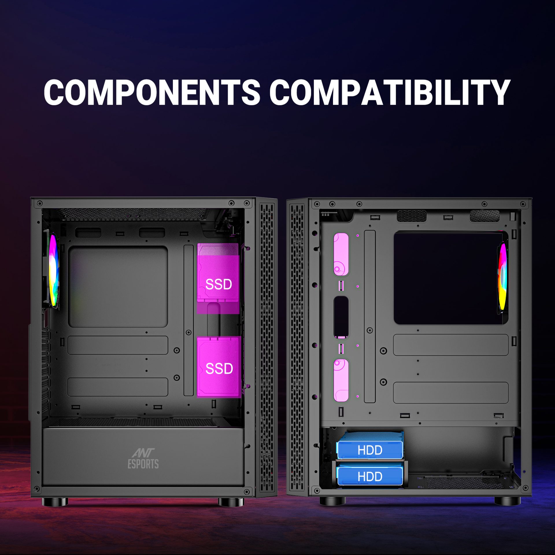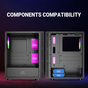 - Versatile Storage Options: The Ant Esports Infinity X offers flexible storage options to meet your needs. It supports two 2.5″ SSDs and two 3.5″ HDDs simultaneously, allowing you to store a vast library of games, multimedia files, and data without any compromises. Enjoy quick access to your files and seamless gaming experiences.