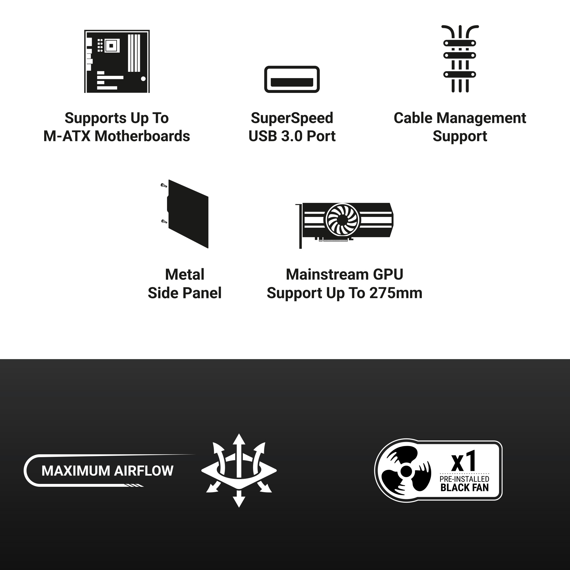 With support for Micro-ATX and Mini-ITX motherboards, the SI12 delivers the flexibility you need to build a highly capable system without consuming desk space. Its carefully engineered airflow layout, featuring a pre-installed 120mm rear exhaust fan, ensures stable thermal performance even during demanding workloads.