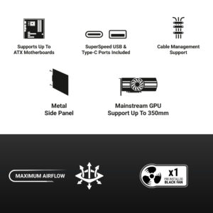 Despite its small footprint, the SI30 offers compatibility with full-size ATX motherboards and high-performance GPUs up to 350mm. The front and rear fan support ensures efficient cooling, while the high-airflow side panel ventilation maintains optimal thermal performance.