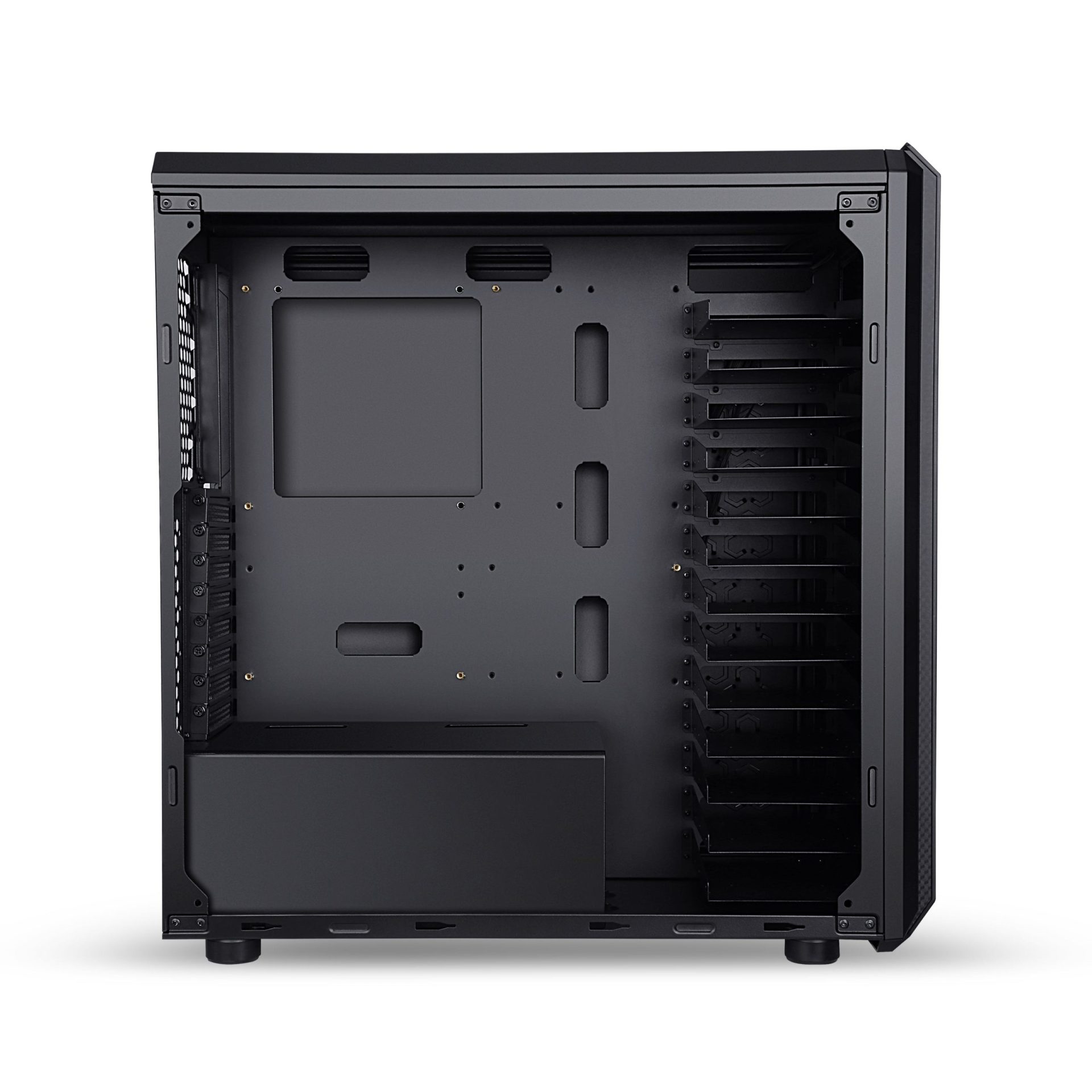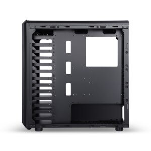 The Vanguard supports massive storage capacity and can support up to thirteen 3.5” HDD or 2.5” SSD, to top it up additional support for two 5.25” optical drives is also present for those who can make use of it. The front IO panel is rich in terms of connectivity and has three USB ports available with three additional spaces for you to load it with the ports of your choice and requirement.