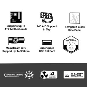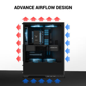 At the heart of the chassis lies its integrated front LCD display, offering real-time monitoring of system temperatures, fan speeds, performance statistics, and more. Whether you’re gaming, streaming, or multitasking, stay informed with instant visual feedback right from your case.