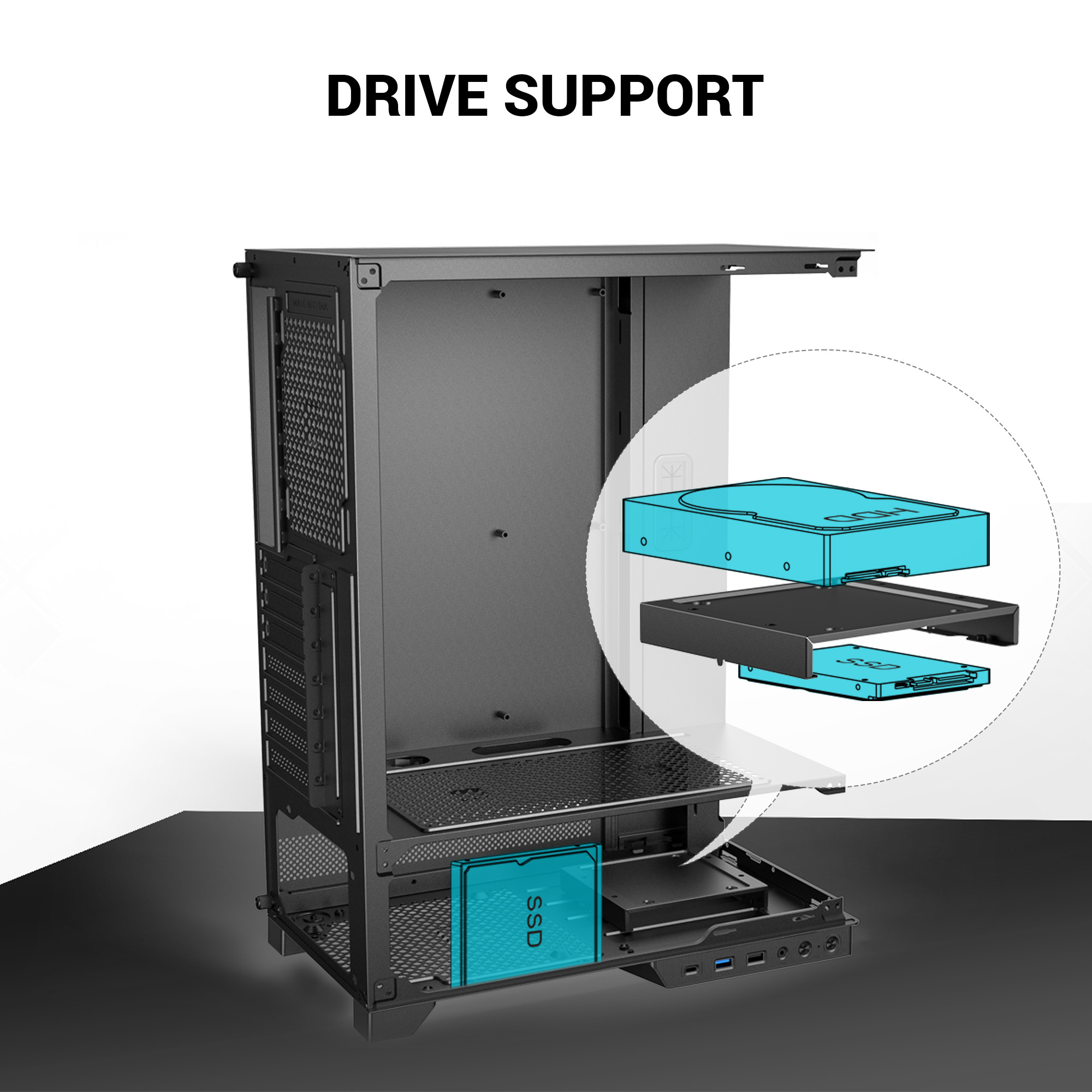 Built for modern hardware, the X2 LCD supports GPUs up to 330mm and CPU air coolers up to 170mm, allowing compatibility with high-performance graphics cards and cooling solutions. With dedicated storage support for 1 HDD + 2 SSDs, along with a well-organized cable routing system, the case ensures a seamless and clean build experience.