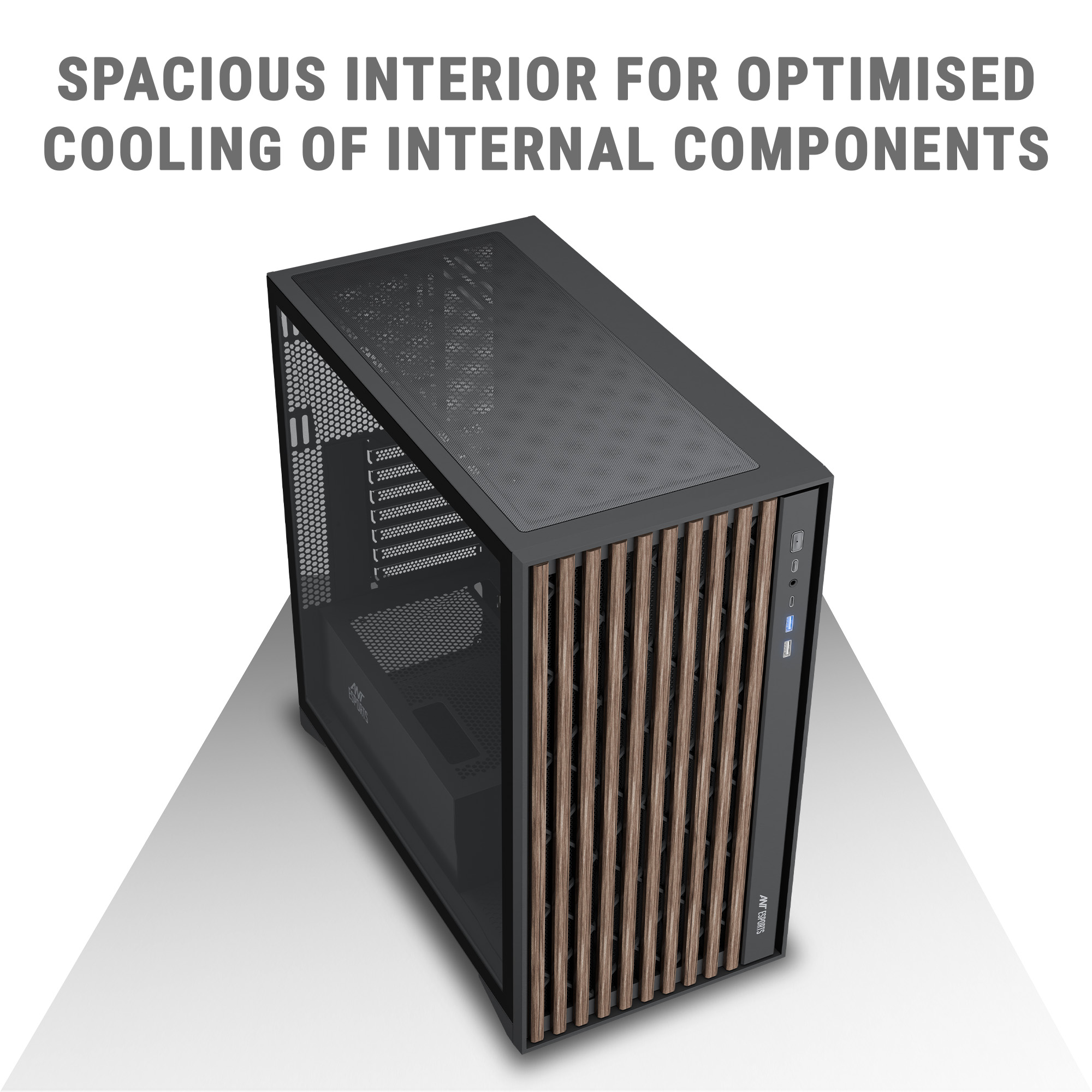 Ant Esports Zen Wood C3 Mid-Tower ATX, Micro-ATX, Mini-ITX Black Cabinet 4x120mm