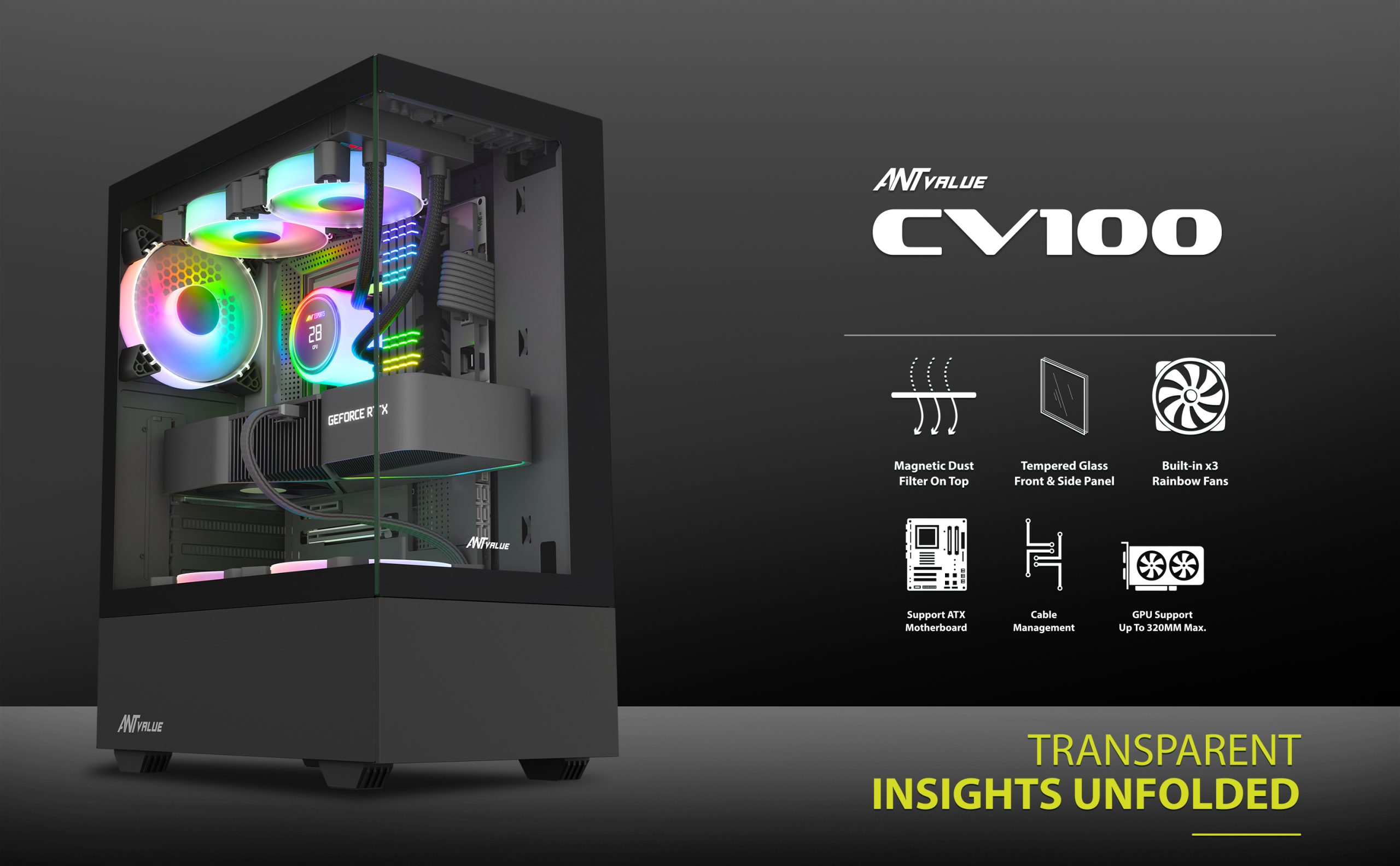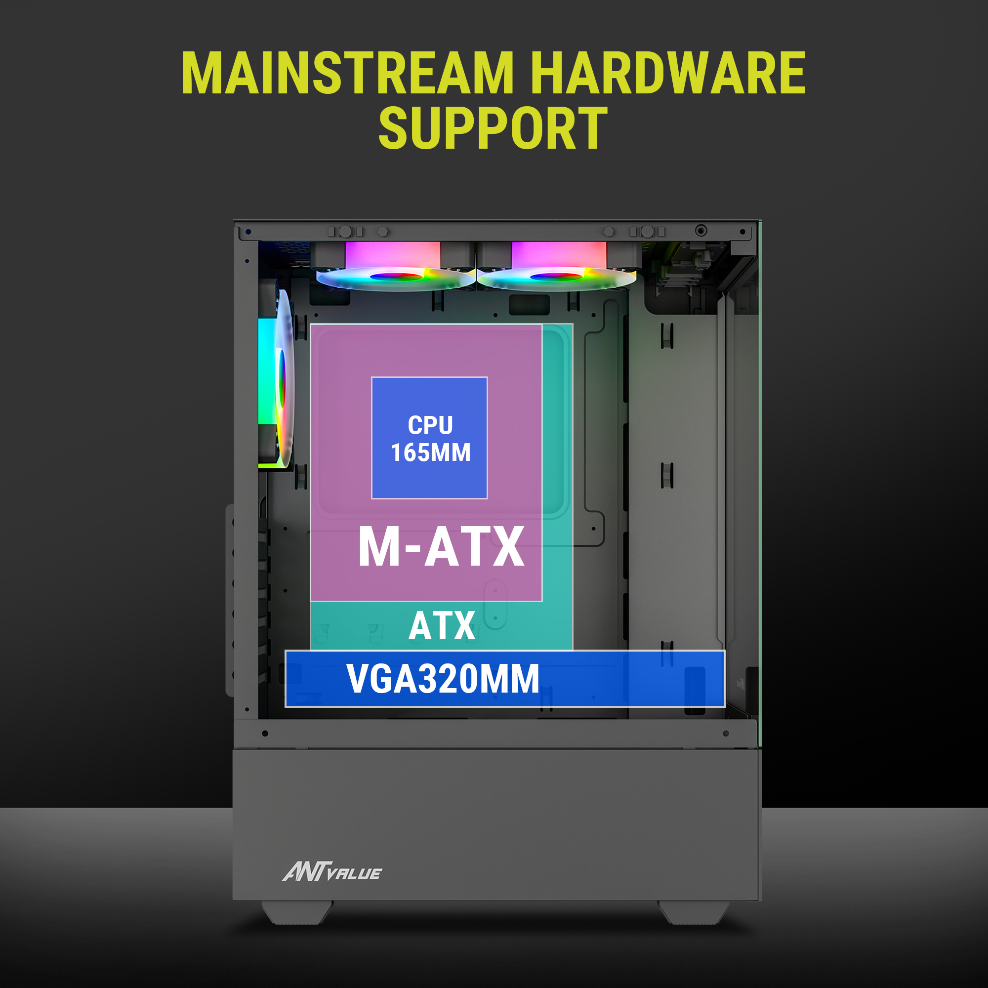 Compatible with GPUs up to 320 mm and CPU coolers up to 165 mm
