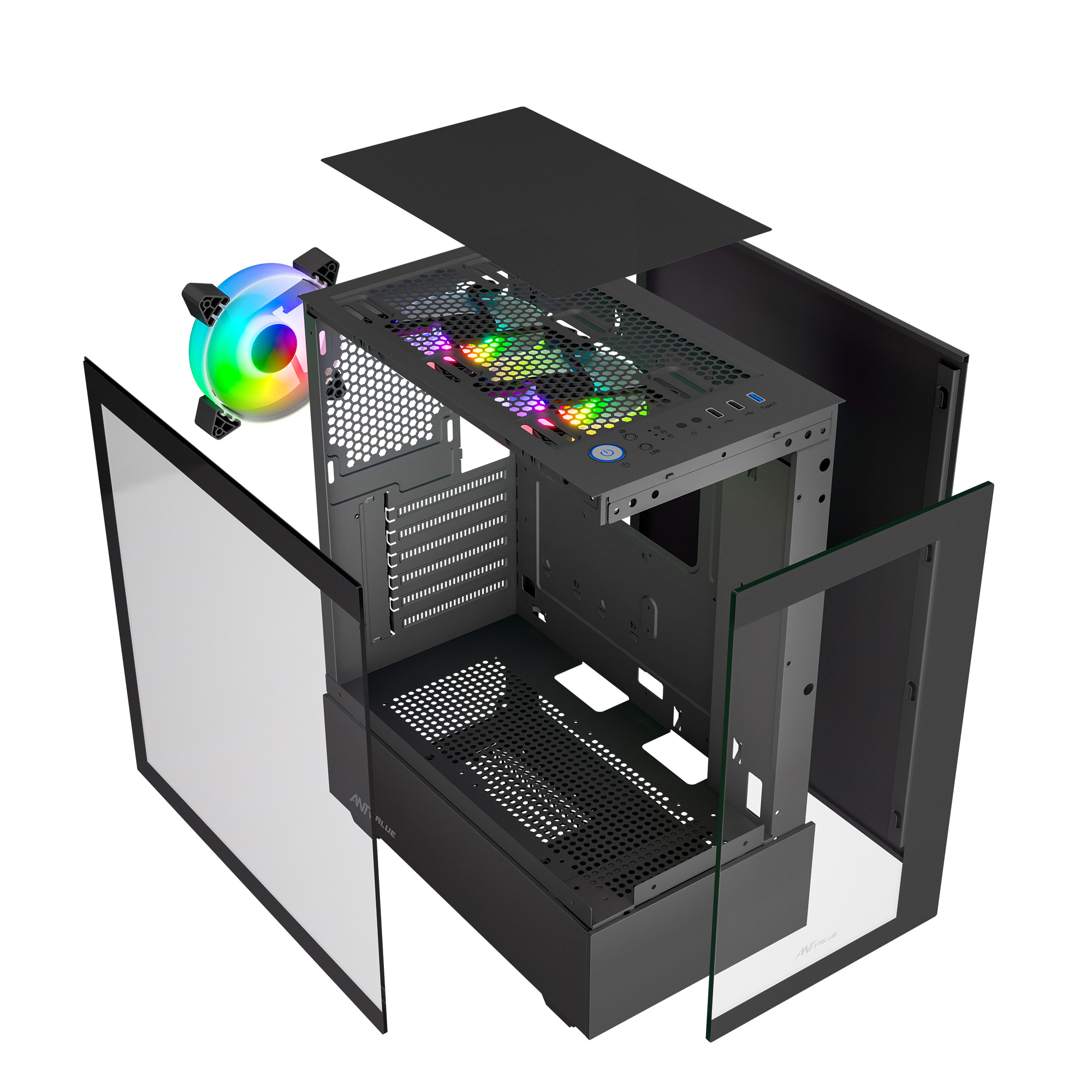 Pre-installed 2 top fans + 1 rear fan for efficient cooling