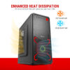 Mesh front panel with LED fan for improved airflow and visual appeal