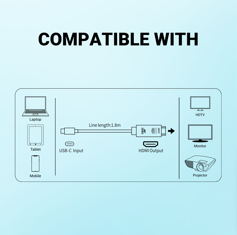 • Easy to use: The AECH18 cable is plug-and-play, so you don’t need to install any software or drivers to get started. Simply plug one end of the cable into your device’s USB Type-C port and the other end into your display’s HDMI port, and you’re good to go.