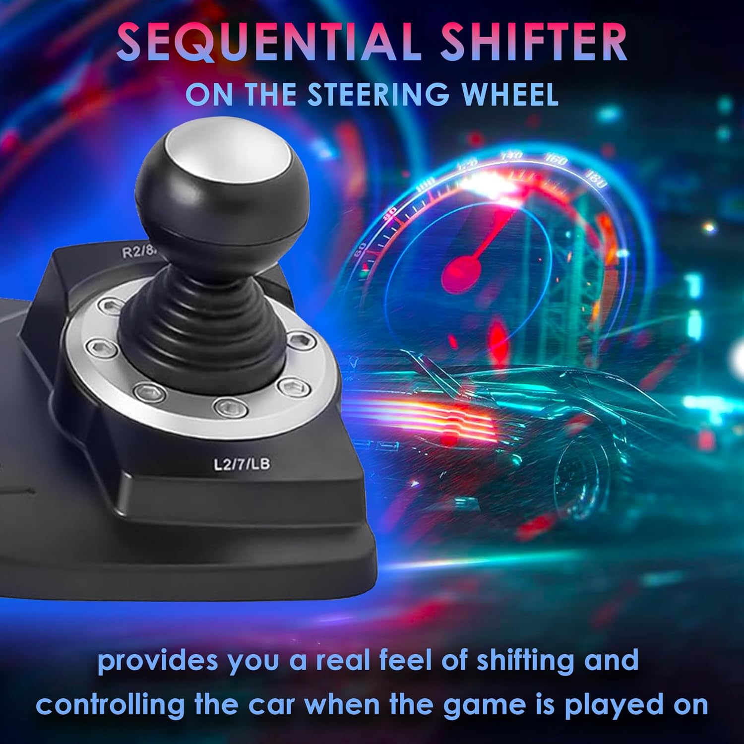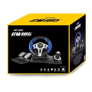 Ant Esports GW185 Racing Wheel 270 Degree Universal USB Powered Car Sim Game Steering Wheel with Gear Shifter and Pedals for PC,Xbox One, PS3, PS4, Switch, Android TV_ Black Blue